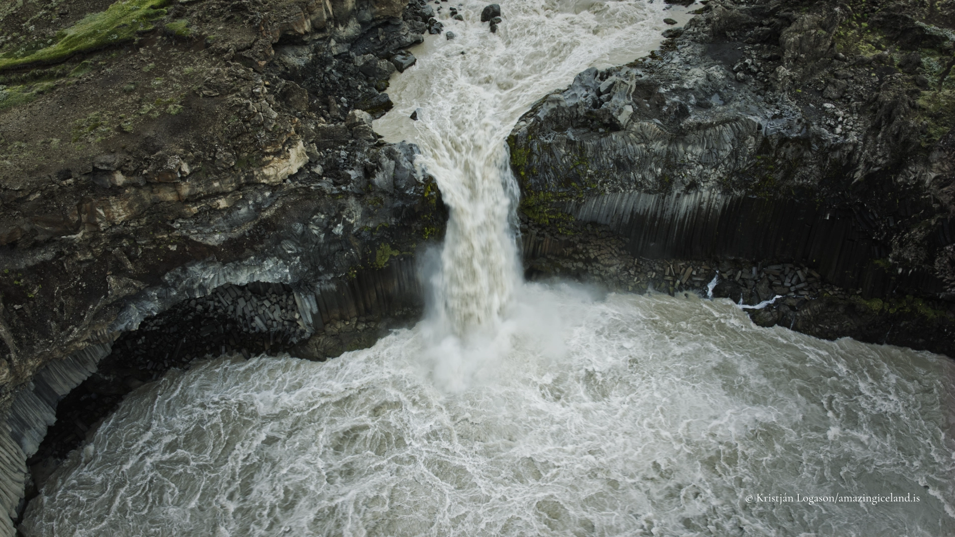Aldeyjarfoss basalt column waterfall