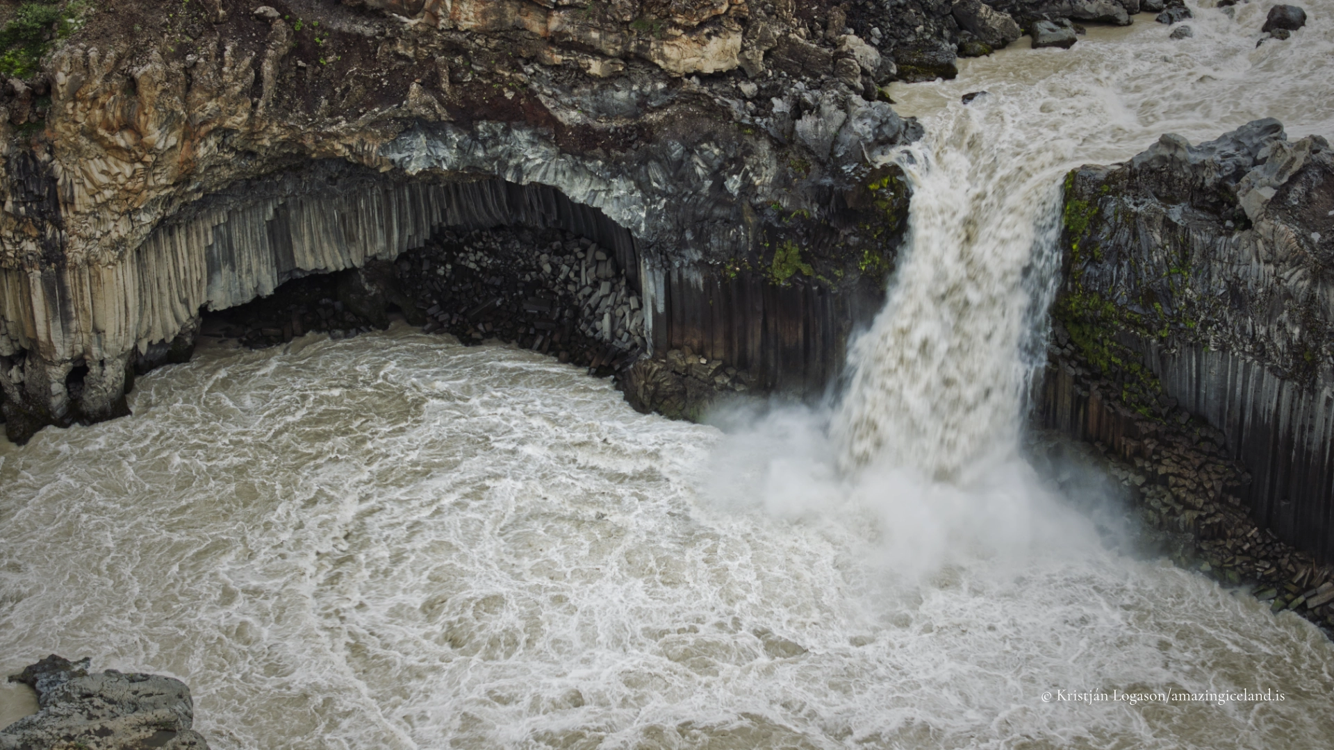 Skjálfandafljót originates in the Icelandic highlands and derives much of its discharge from glacial meltwater and seasonal precipitation. Consequently, Aldeyjarfoss is highly responsive to seasonal change. Summer typically brings higher flow volumes, increased sediment load, and greater acoustic intensity, while winter reduces visible discharge but amplifies the sculptural quality of the basalt through snow and ice accumulation.