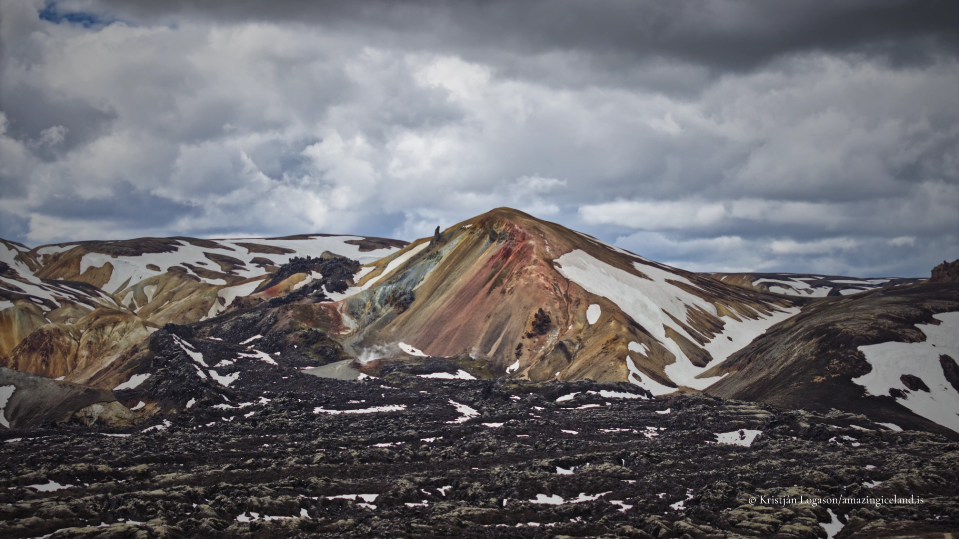 Brennisteinsalda is one of the most distinctive mountains in Landmannalaugar, rising directly above the geothermal basin and trail network of the Fjallabak Nature Reserve. Known for its strong colour contrasts and active geothermal alteration, the mountain offers a clear, close-range view of rhyolitic volcanism and surface processes that continue to shape the landscape today.