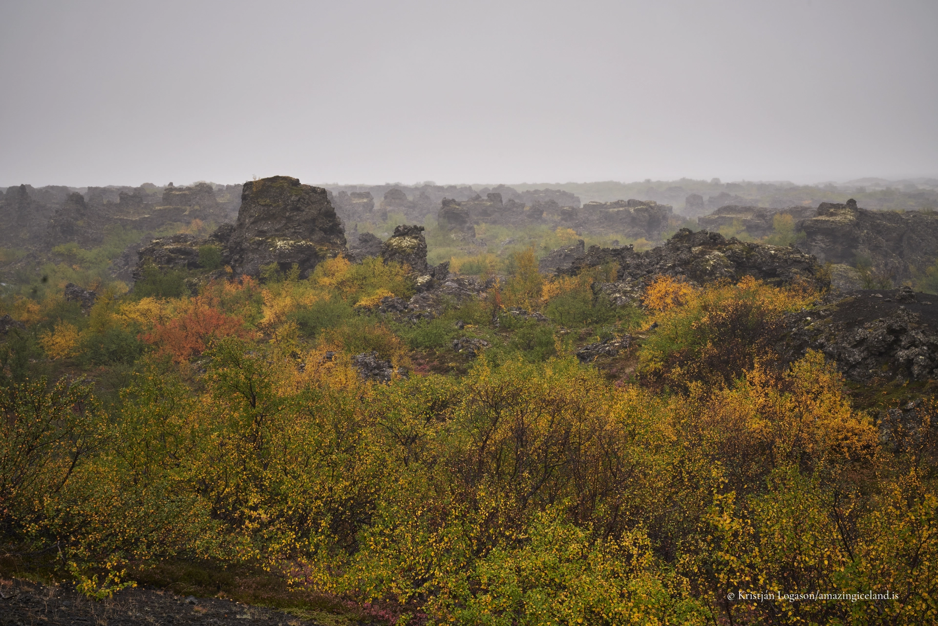 Within the broader Mývatn landscape, Dimmuborgir functions as a structural counterpoint to open water, wetlands, and geothermal fields. Where the lake emphasizes biological productivity and surface continuity, Dimmuborgir emphasizes interruption, enclosure, and verticality.