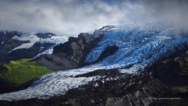 Falljökull has retreated noticeably in recent decades, consistent with broader patterns observed across Vatnajökull’s outlet glaciers. The lower terminus has thinned and pulled back, while formerly continuous ice surfaces have broken into smaller, disconnected units.