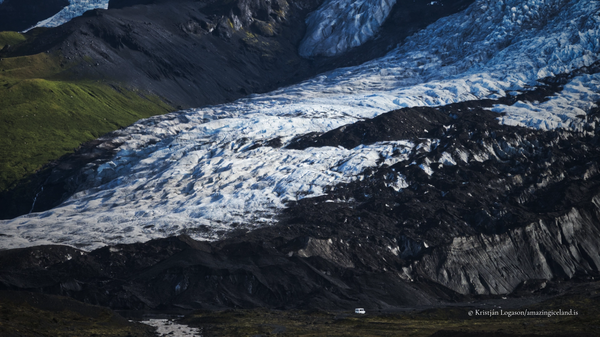 Visually, Falljökull is most legible from mid-distance viewpoints where the icefall structure can be read as a whole. Close proximity obscures scale and increases risk without adding clarity.