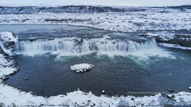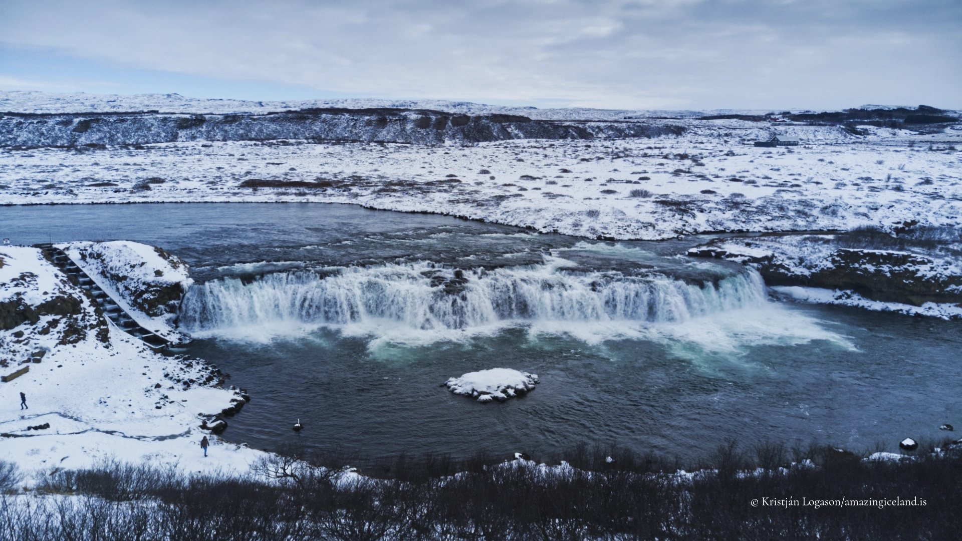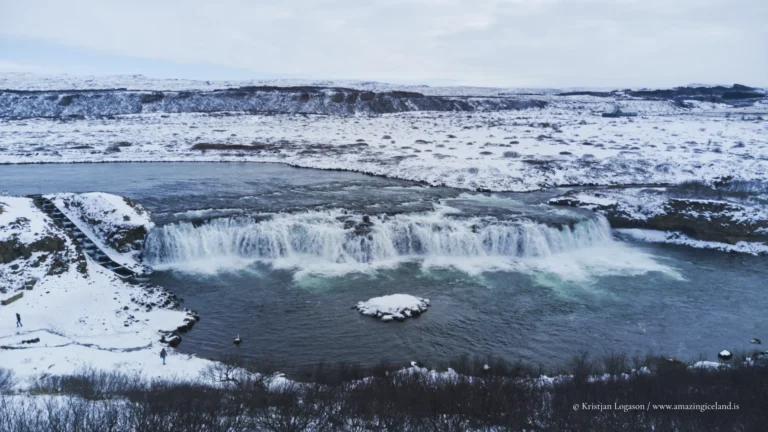Faxi is situated on Tungufljót, a river that drains agricultural lowlands east of the Golden Circle area. The waterfall is relatively low, with a drop of approximately 7 meters, but it spans a wide section of the river, creating a continuous curtain of water rather than a single concentrated plunge.