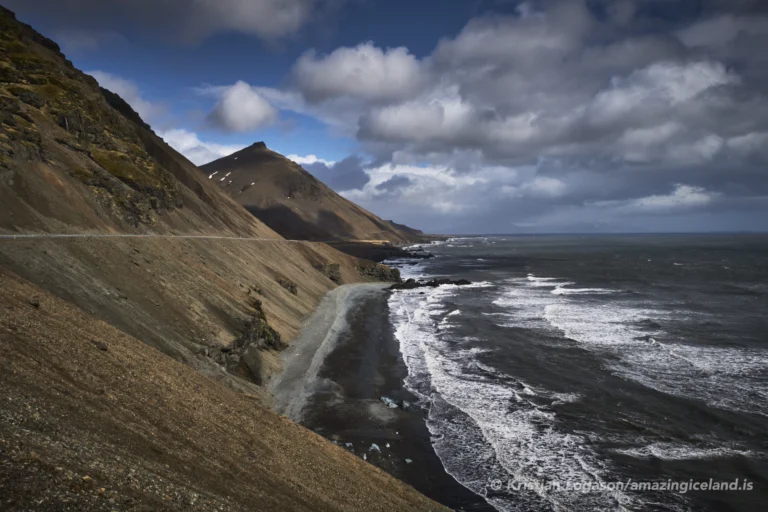 Historically, this section of the coast was among the most feared passages in East Iceland. Before the completion of the Ring Road in 1974, access between the fishing villages of Djúpivogur and Höfn was extremely difficult, often requiring long detours over mountain passes or by sea. Once the road was carved into the scree slopes of Hvalnesskriður, it quickly earned a reputation for danger. Rockslides were frequent, winter storms could block travel for days, and drivers were forced to navigate the narrow track with the ocean breaking at their wheels.
