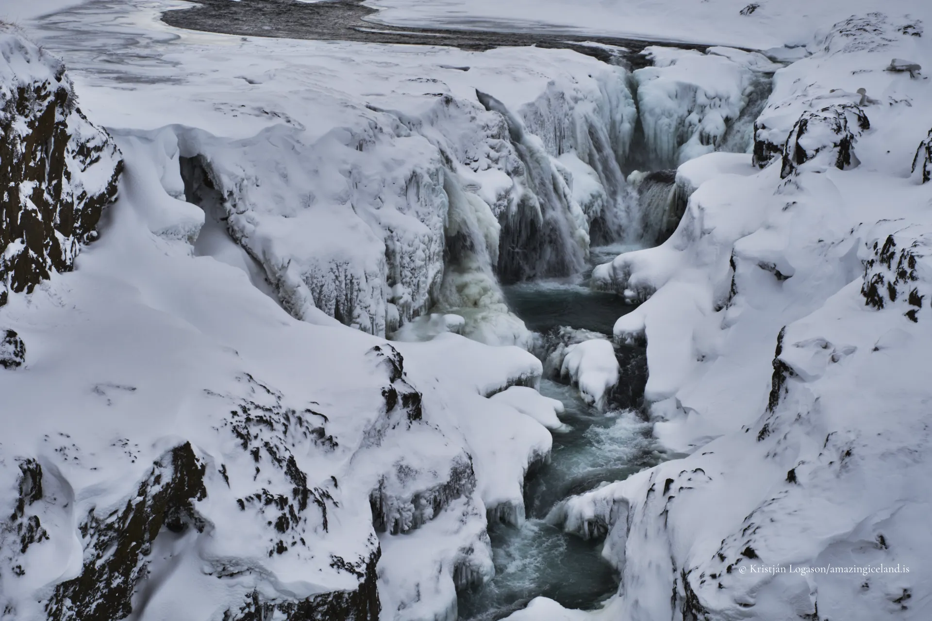The waterfalls divide the canyon into segments, producing a visual rhythm that mirrors geological structure. Rather than one dominant focal point, Kolugljúfur invites movement along the rim, reading the gorge as a sequence of interactions rather than a single event.