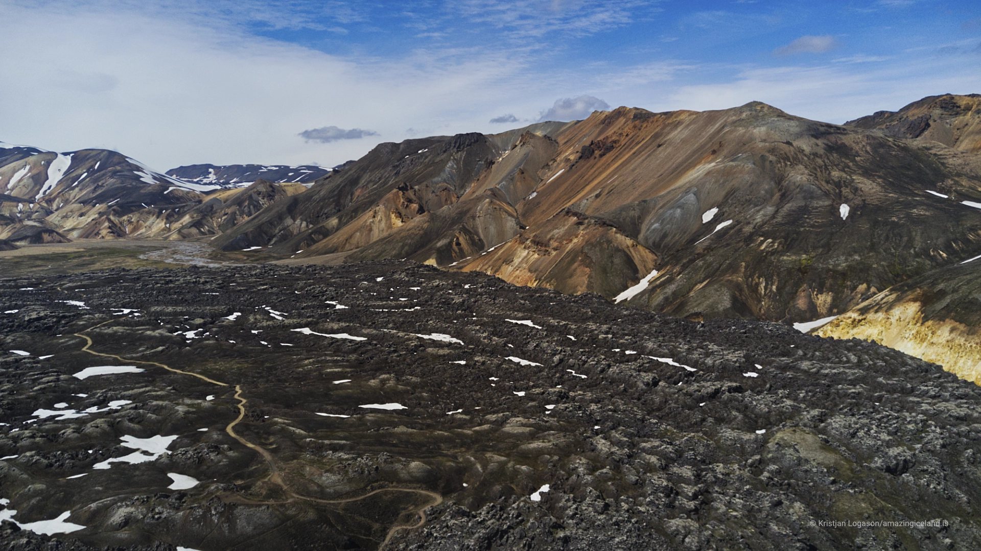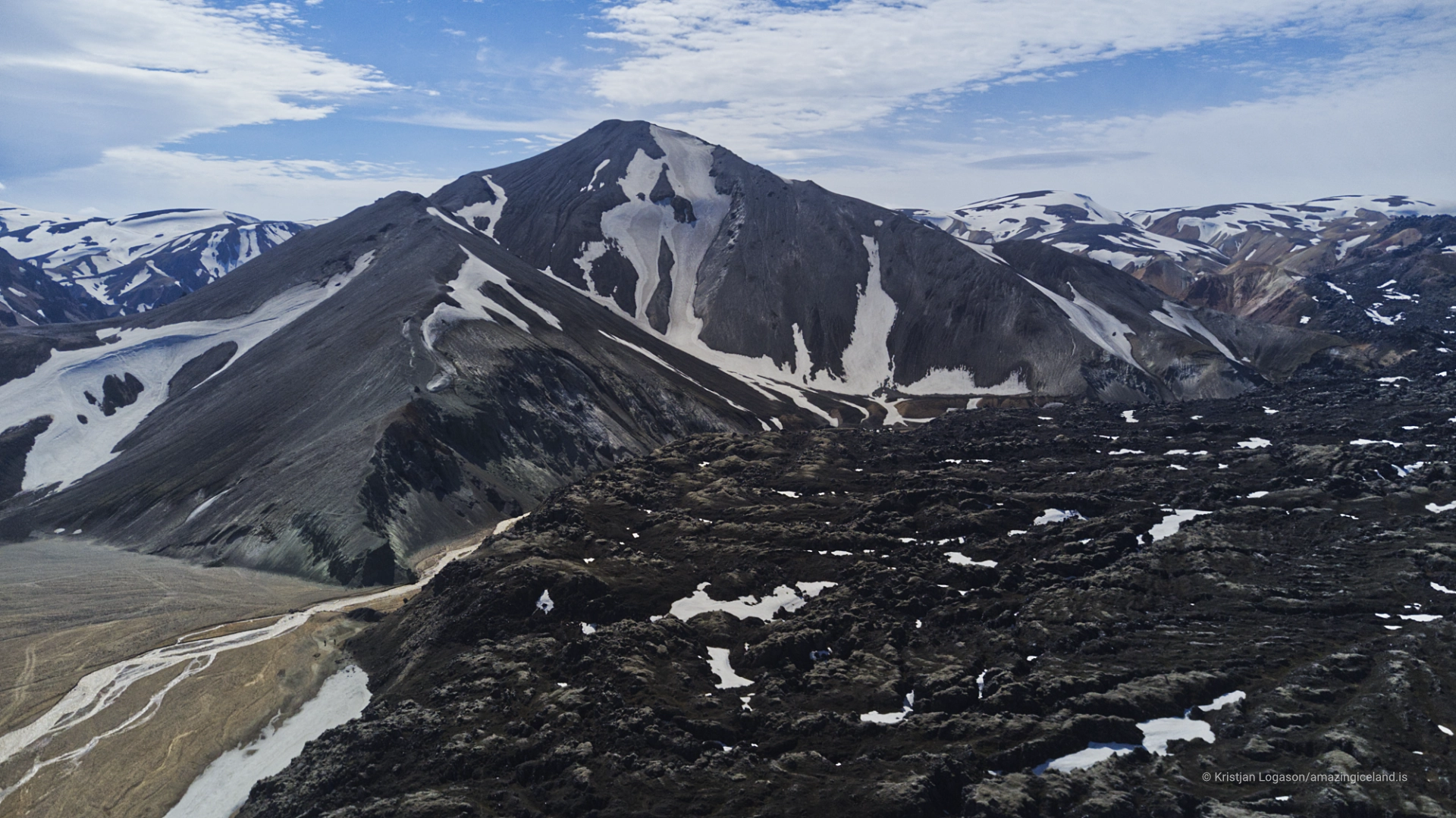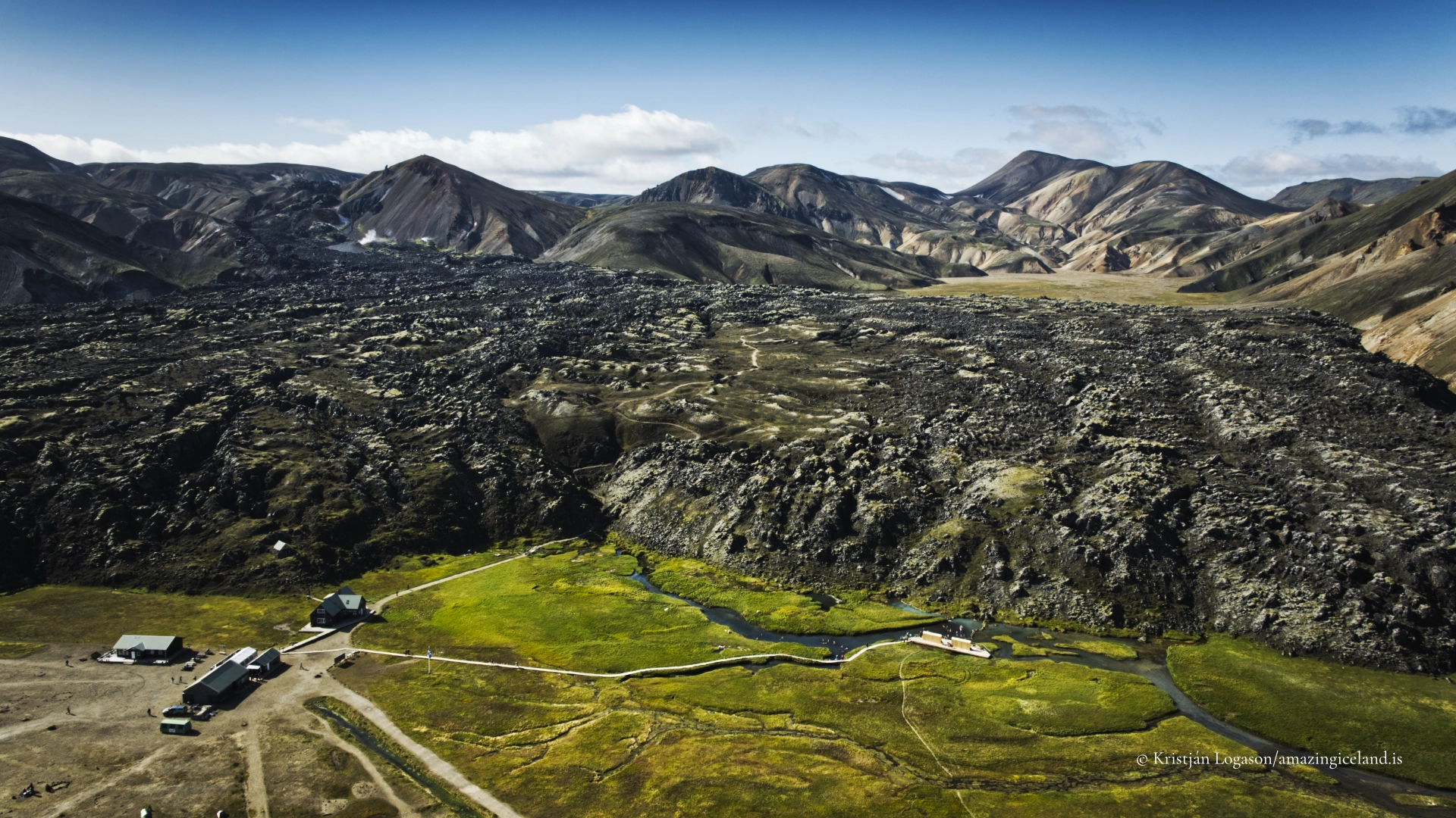 Laugahraun is a young basaltic lava field at Landmannalaugar, formed during the 1477 Veiðivötn eruption. Dark, fractured, and still sharply textured, it stands in direct contrast to the surrounding rhyolite mountains and geothermal slopes. More than a backdrop, Laugahraun is a defining structural element of the Landmannalaugar landscape, shaping access, water flow, and human movement through the area.