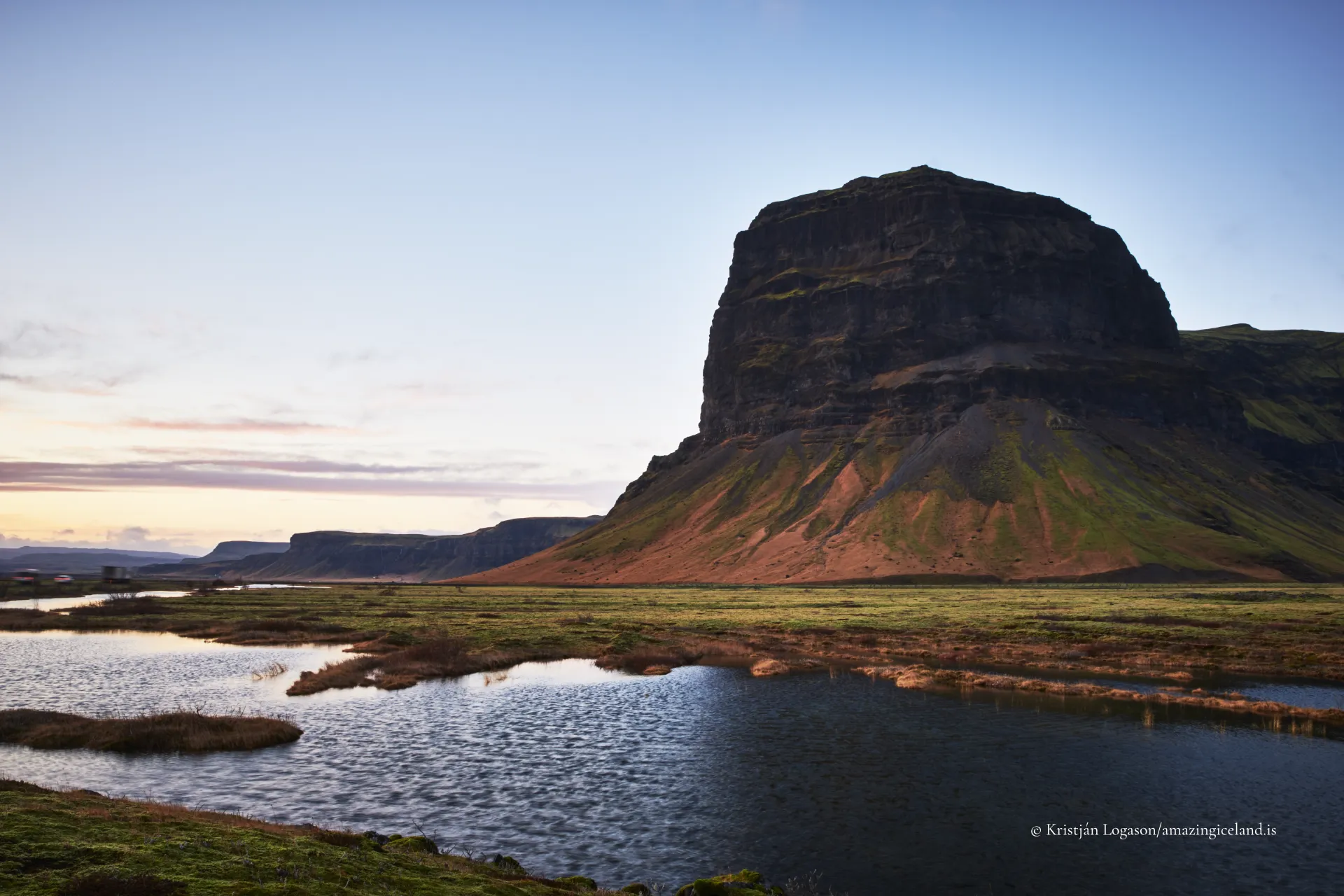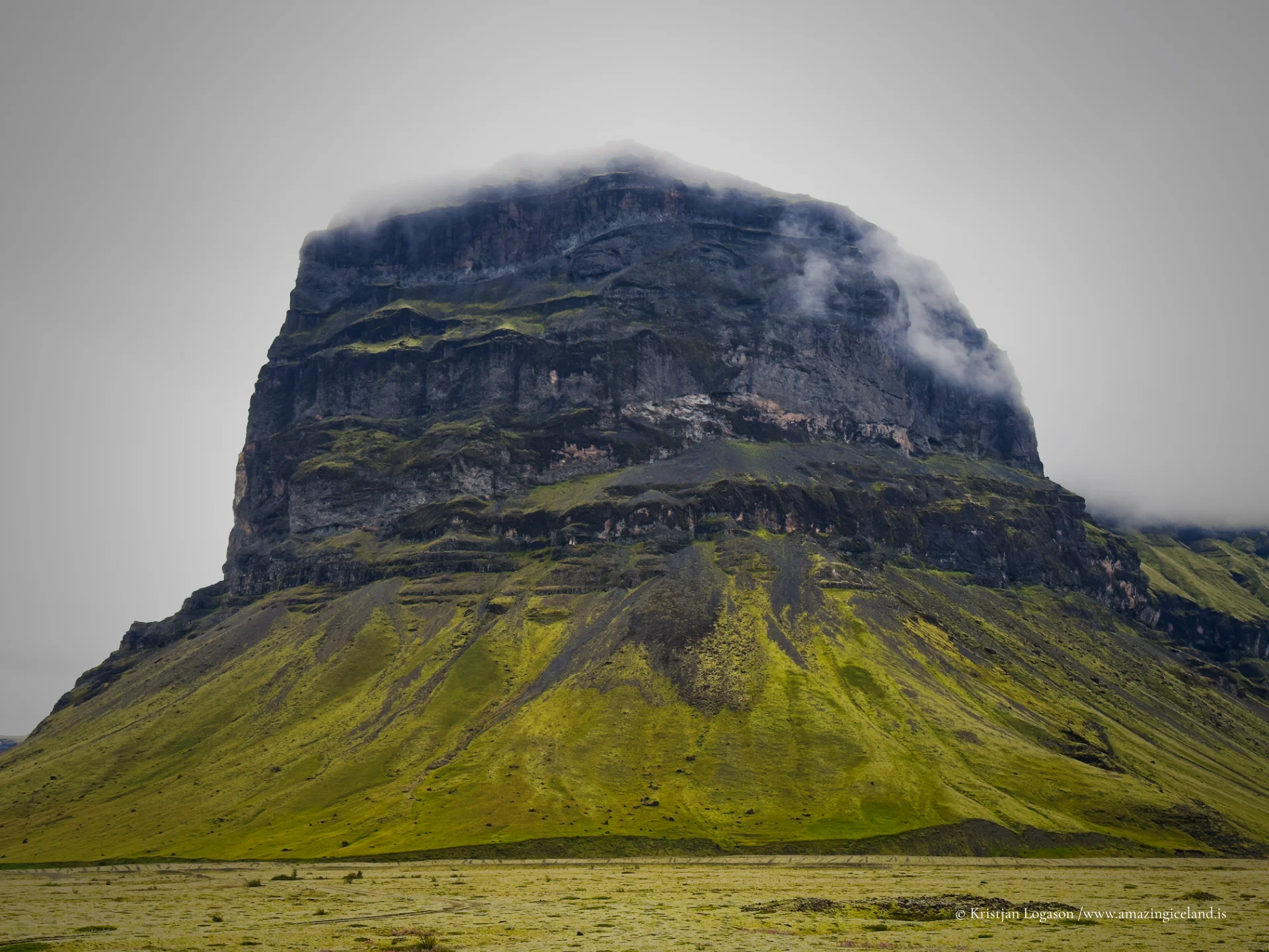 Along Iceland’s South Coast, near the eastern edge of the Eldhraun lava field, Lómagnúpur rises sharply from the surrounding lowlands. Its sheer basalt face, visible from long distances, contrasts with the flat plains below and offers a clear example of how volcanic stratigraphy and glacial erosion intersect to produce dramatic, isolated landforms.