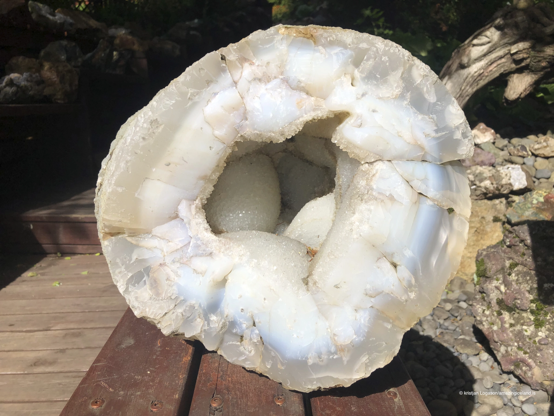 From a geological standpoint, East Iceland is particularly well suited to such a collection. The region contains some of Iceland’s oldest exposed bedrock, dominated by basalt lava flows interspersed with veins of quartz, zeolites, calcite, jasper, agate, and other secondary minerals formed through hydrothermal processes. Petra’s collection captures this diversity at a granular scale.