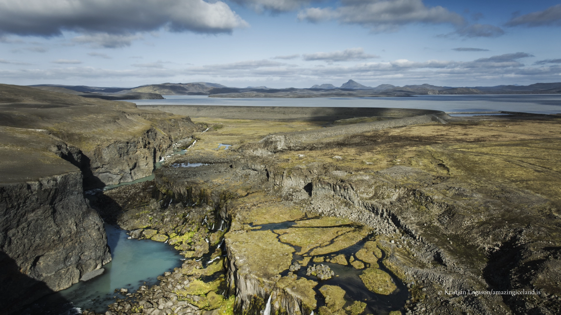 Despite its proximity to infrastructure, Sigöldugljúfur feels visually coherent with the surrounding highland environment. Moss, low vegetation, and exposed lava surfaces frame the canyon without softening it. This balance—human modification nearby, raw geomorphology in the foreground—is characteristic of many Icelandic interior landscapes and is best understood as layered rather than contradictory.