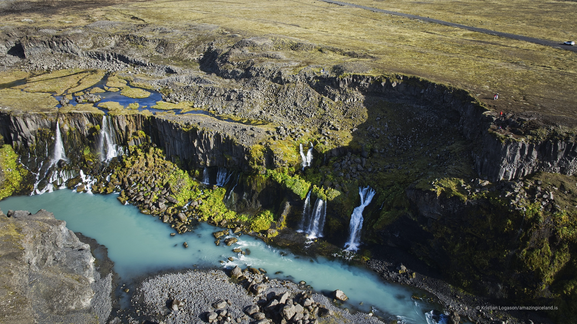 The canyon’s popularity increased significantly after aerial images circulated online, revealing patterns that are less obvious from ground level. From above, the turquoise water traces sharp bends and narrow channels, emphasizing contrast and repetition. While drones are often associated with this perspective, the underlying appeal is structural: Sigöldugljúfur is visually ordered, even though it is entirely the product of natural forces.