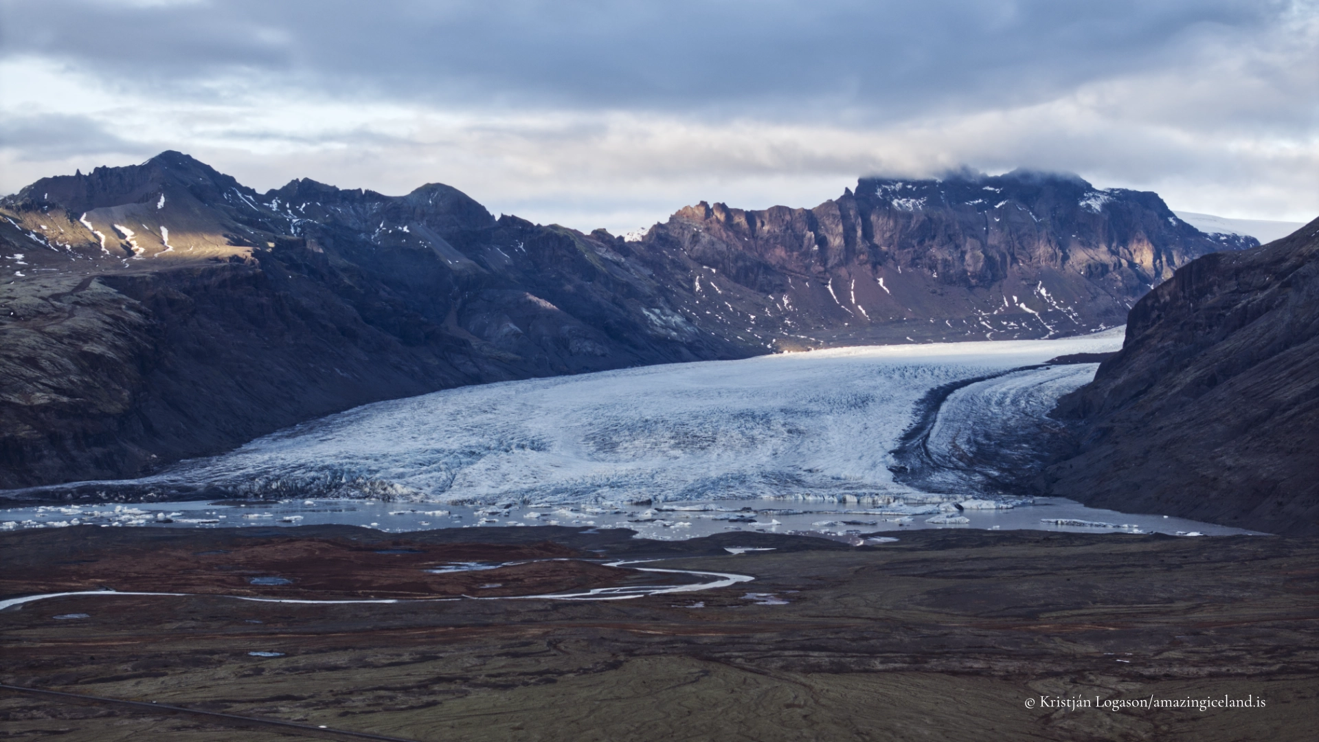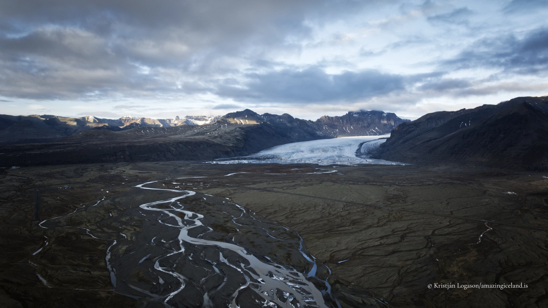 Meltwater emerging from beneath the glacier feeds braided streams that cross the forefield, carrying fine sediment toward Skeiðarársandur. These hydrological pathways link the glacier directly to downstream outwash systems.