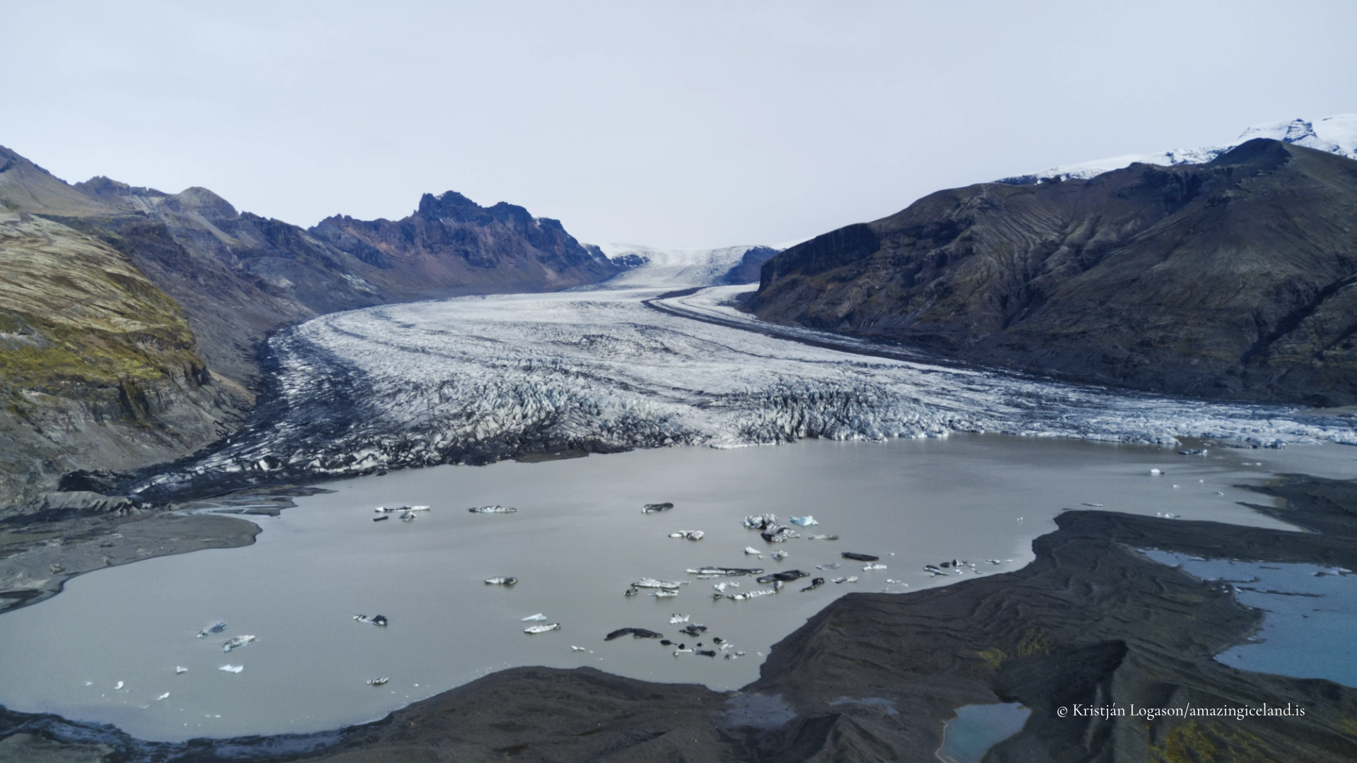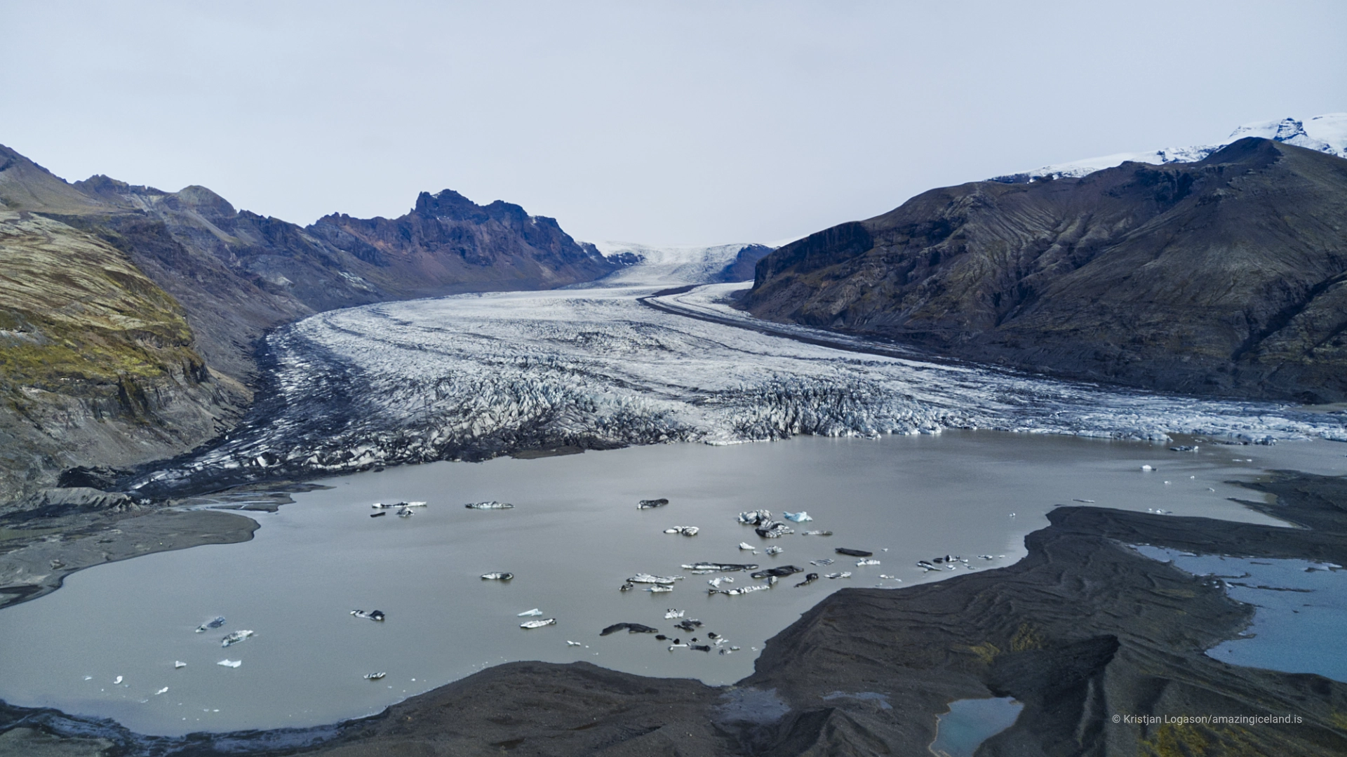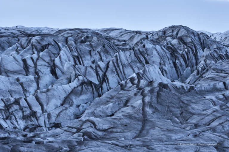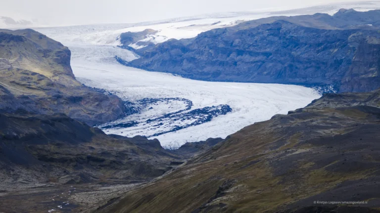 Unlike heavily debris-covered glaciers, Skaftafellsjökull retains relatively clean ice at its lower tongue. This makes surface features—such as flow lines, crevasses, and meltwater channels—particularly visible and accessible for observation.