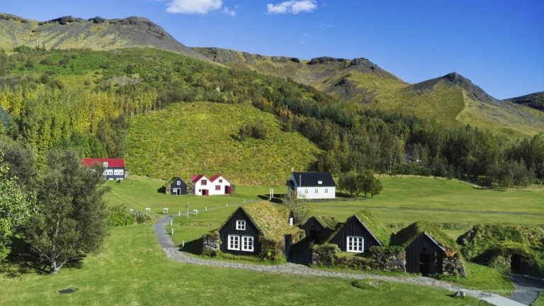 One of the museum’s defining features is its open-air turf house collection, which includes reconstructed farm buildings from different periods. These structures—composed of timber frames, turf walls, and grass roofs—demonstrate architectural strategies optimized for insulation, material scarcity, and environmental exposure. Rather than representing a single “traditional” form, the houses illustrate gradual refinement over centuries.