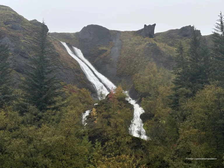 Overlooking the village of Kirkjubæjarklaustur, Systrafoss presents itself not as a single dramatic plunge, but as a structured system of waterfalls shaped by geology and time. The twin cascades—often referred to as Upper and Lower Systrafoss—form a visual and cultural landmark that connects Iceland’s volcanic terrain with centuries of settlement, belief, and landscape use.