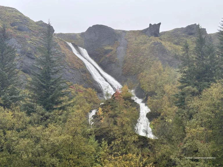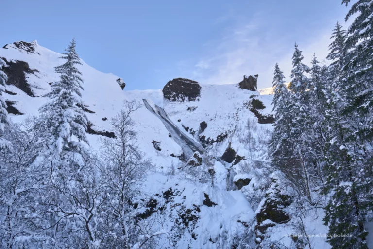 Seasonally, Systrafoss undergoes marked transformation. In spring and early summer, snowmelt from the upper slopes increases flow, emphasizing the width and texture of the upper cascade. In drier periods, the waterfall becomes more linear and restrained, exposing the underlying basalt geometry. Winter introduces another layer altogether: partial freezing highlights edges and strata, temporarily turning flowing water into a sculptural form that reveals the waterfall’s internal structure.